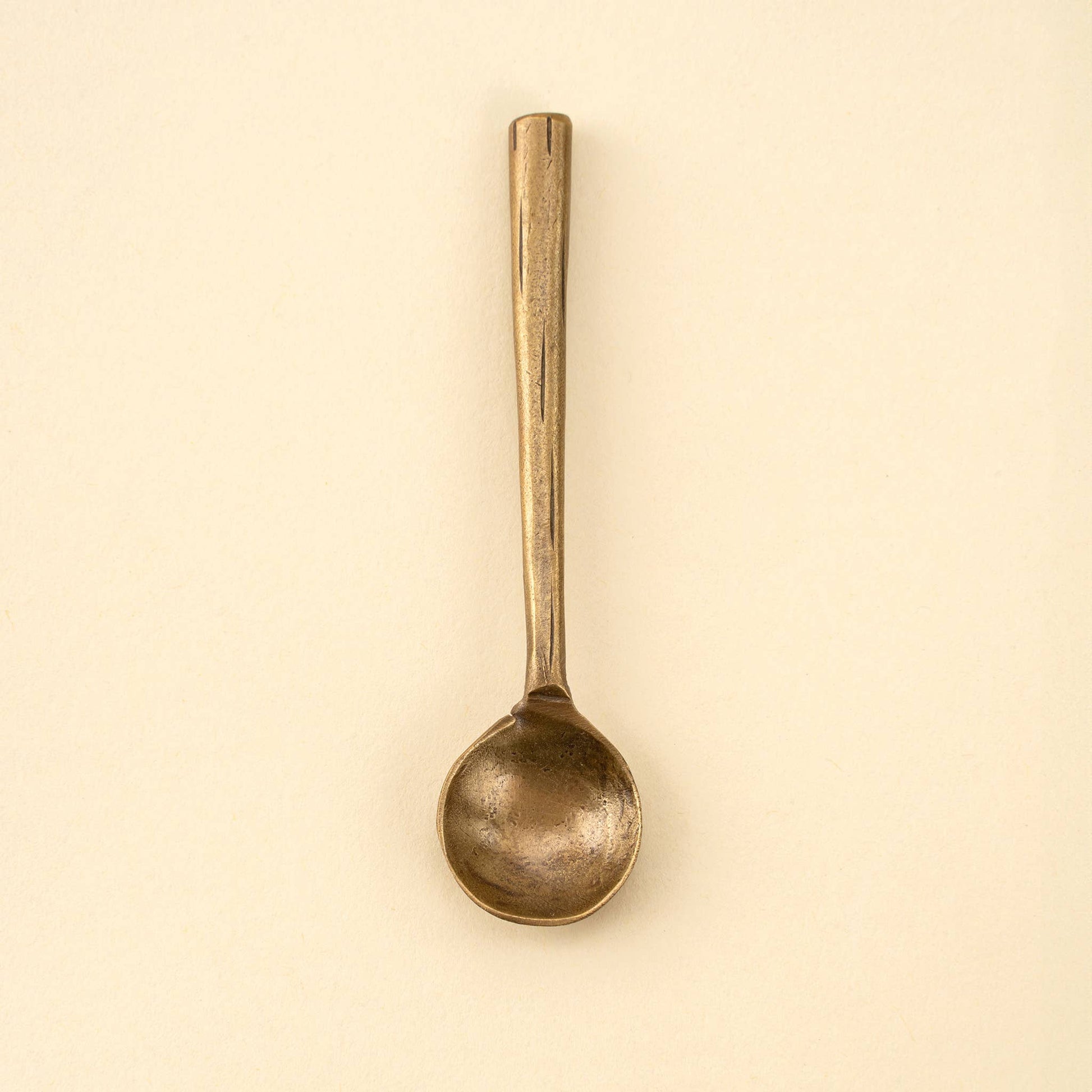 Aged Brass Salt Spoon, A Handcrafted Artisan Accent for Kitchen Decor