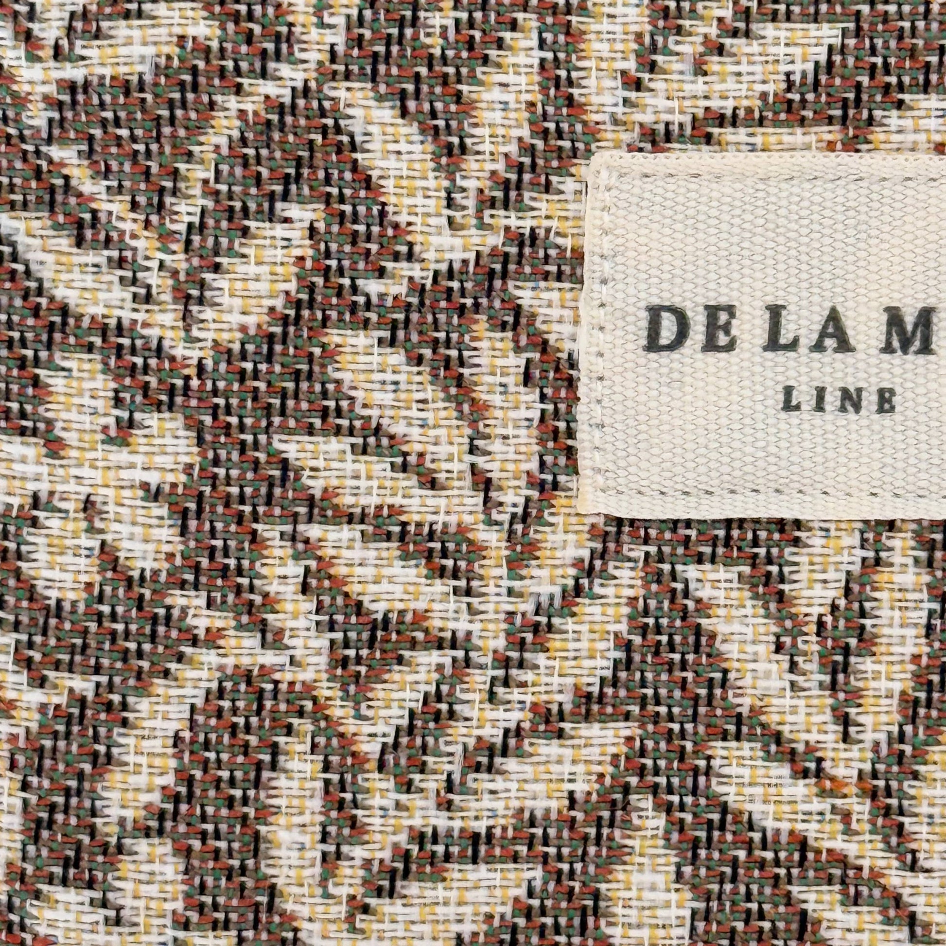 Eyewear case with zipper closure on top and a small beige cord handle on the side. Made from thick jacquard fabric with a floral pattern in cream on a taupe background. Each piece may vary slightly depending on where the fabric was cut. Lined with thick gray fabric on the inside. Hand wash cold and do not tumble dry.