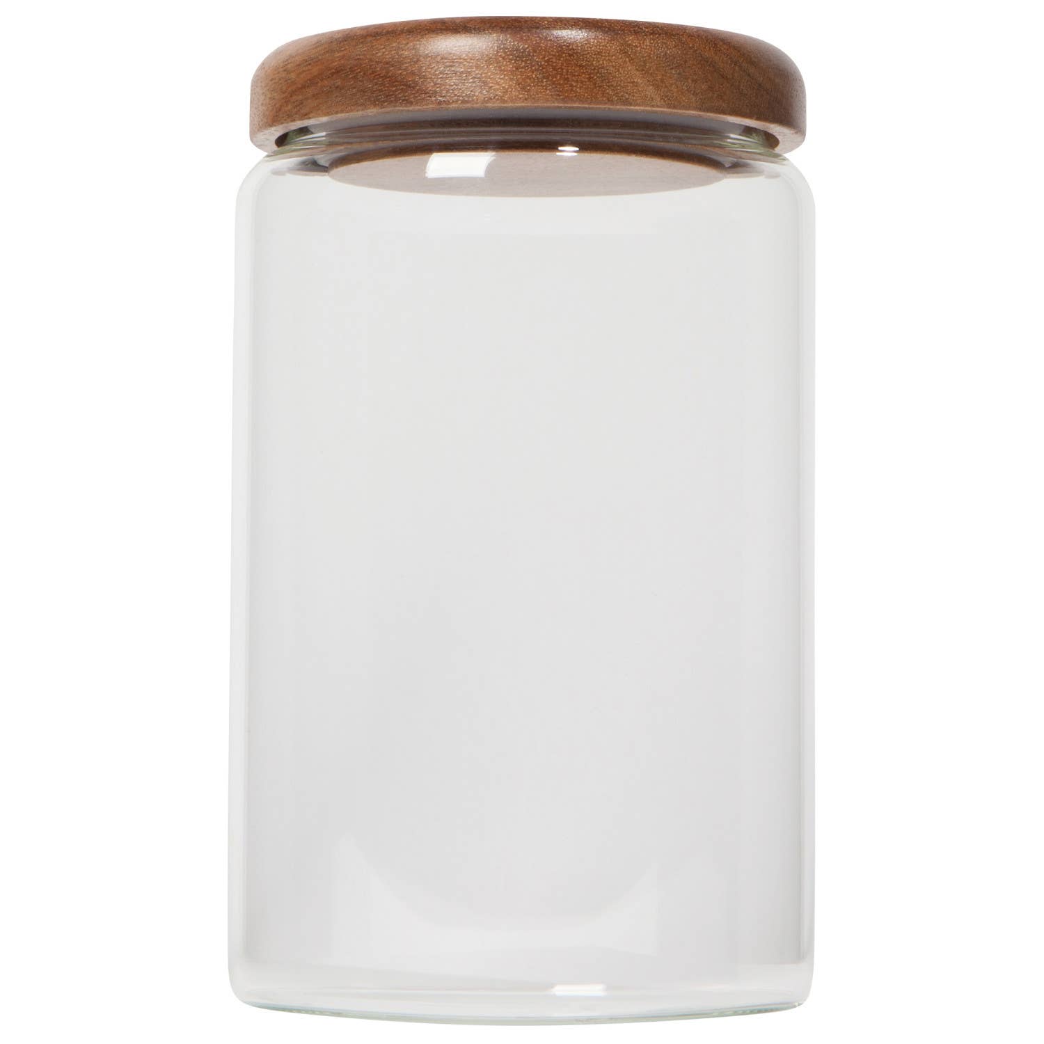 This glass jar with acacia wood lid offers an elegant food storage solution. Made of food-safe materials, this jar is stylishly suitable for use in and out of the kitchen. Features a wide mouth and silicone rubber seal to preserve freshness.