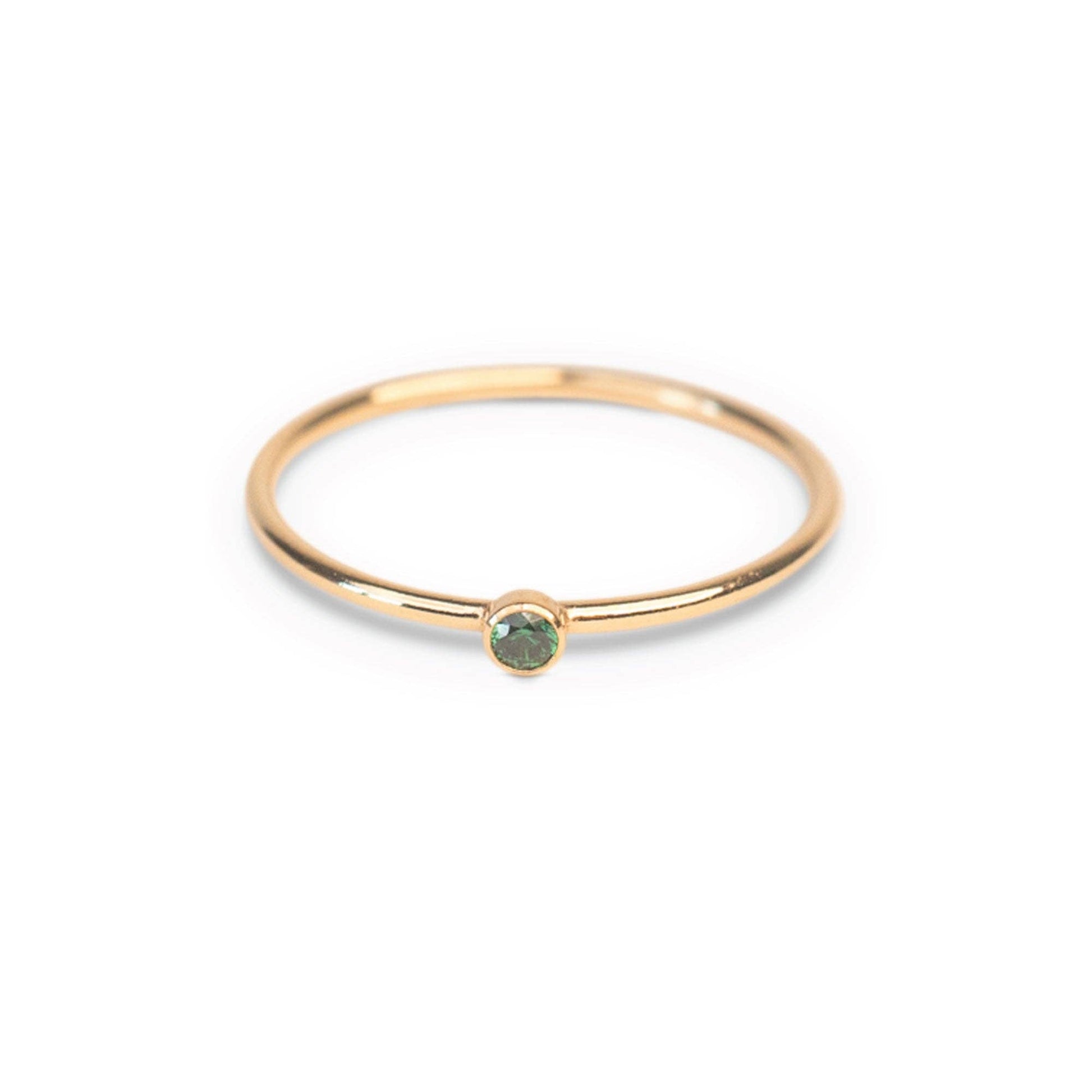 Try out our dainty emerald crystal stacker. The great thing is that you can wear it on its own. Or you can layer it well with other rings.