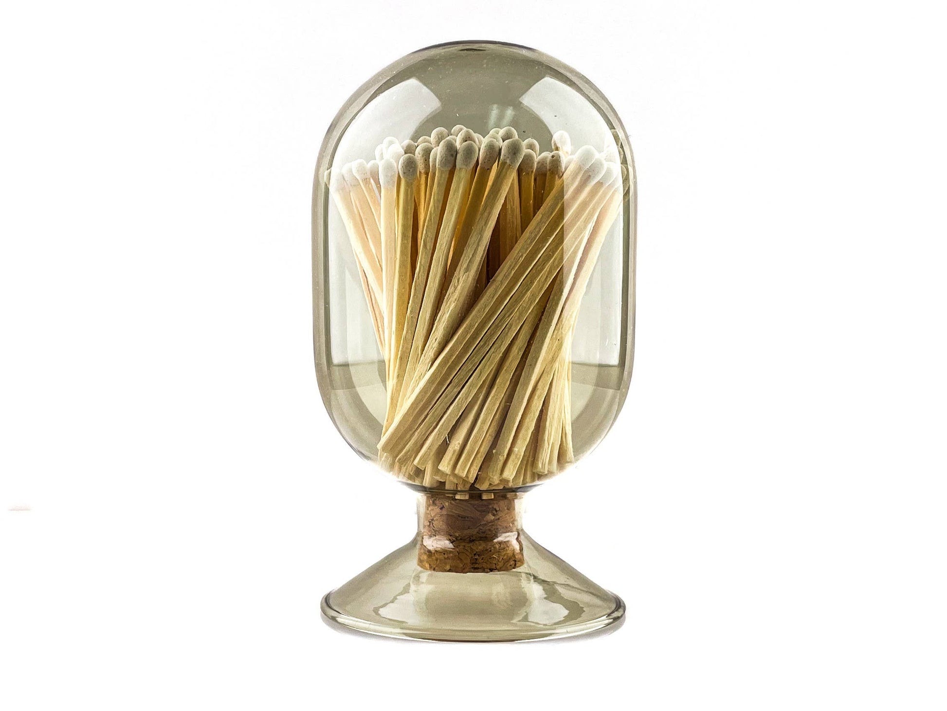 This glass cloche and includes 3 inch long safety matches . The perfect addition or accent piece to a decorative candle set, kitchen, bathroom or display. The cloche is designed to hold safety matches, keeping them organized and easily accessible. STYLISH & FUNCTIONAL MATCHES: Light a pretty spark with this luxurious bottle full of colorful matches! Each bottle contains match sticks. It comes in a reusable apothecary glass jar and easy to use striker strip attached to the bottle. Use them to light your candles, fireplace, wood stove, gas stove, campfire, charcoal grill, chimenea, fire pit, and more. Take your matches anywhere, or keep them on your tabletop looking pretty! THE PERFECT GIFT THAT GIVES: Our decorative matches are perfectly packaged for gifting and make the best gifts for your candle-loving friends & loved ones, house decor gifts.
