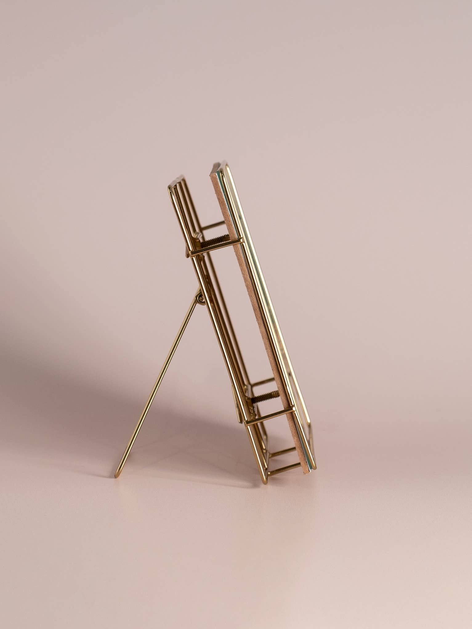 Showcase your cherished memories in style with this sleek and modern gold photo frame. Crafted with a sturdy gold-finished frame, it adds a touch of luxury and sophistication to any space. The durable kickstand allows for versatile display, letting you position your favorite photos, artwork, or prints either vertically or horizontally. Designed to be compact and lightweight, this frame is perfect for desks, shelves, or mantels, making it easy to reposition and refresh your decor. Holds a 5" x 7" photo