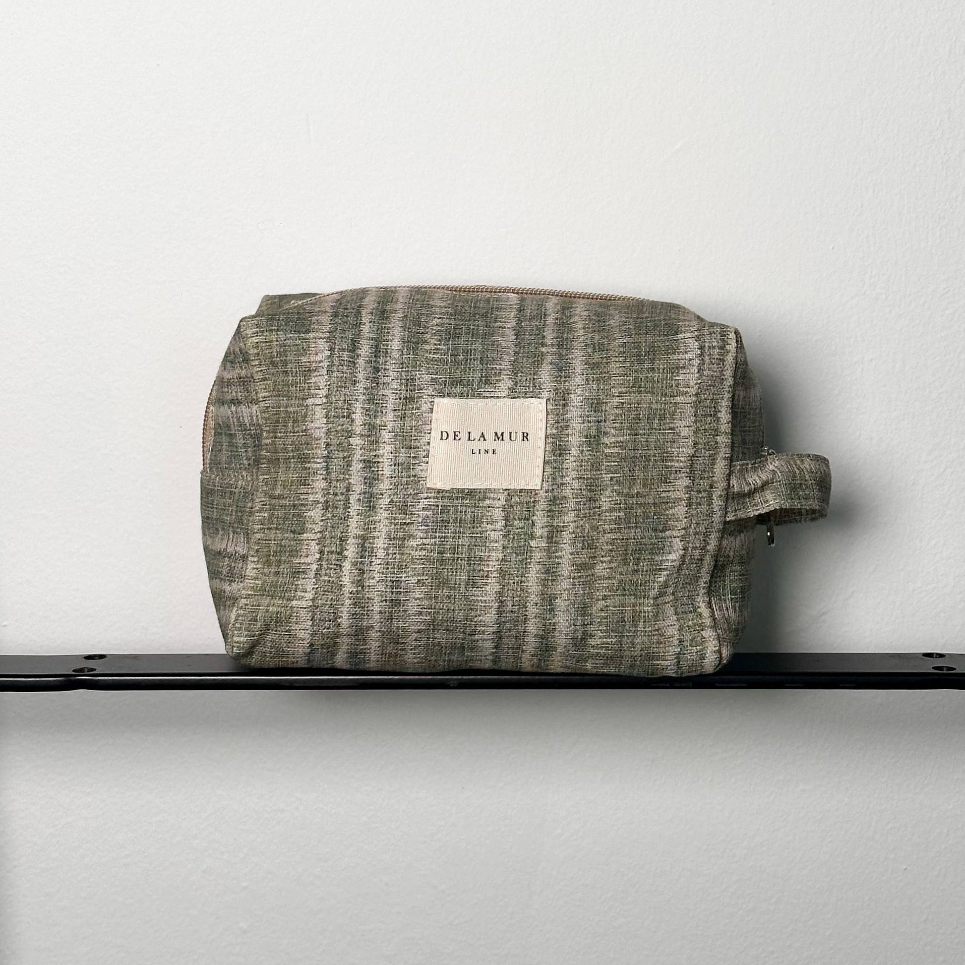 Medium toiletry bag with a zipper at the top and a side handle. Made of tie-dye fabric in green tones. To maintain it properly, it is recommended to wash it cold and not use a dryer.