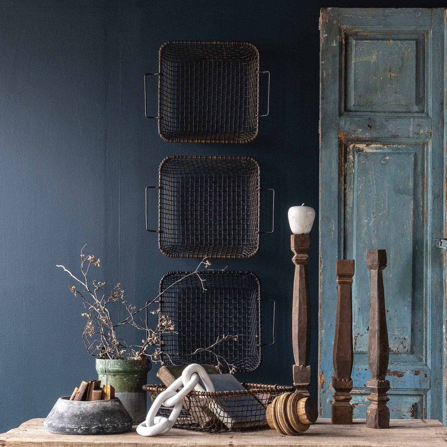Sourced from villages throughout India, the Tapered Village Bowl is a vintage clay pot once used for holding water and grains. Each pot is hand-crafted, featuring a wide basin that tapers down with a flat bottom. While the size and condition will vary, they are roughly 4½ inches tall and about 12 inches round.